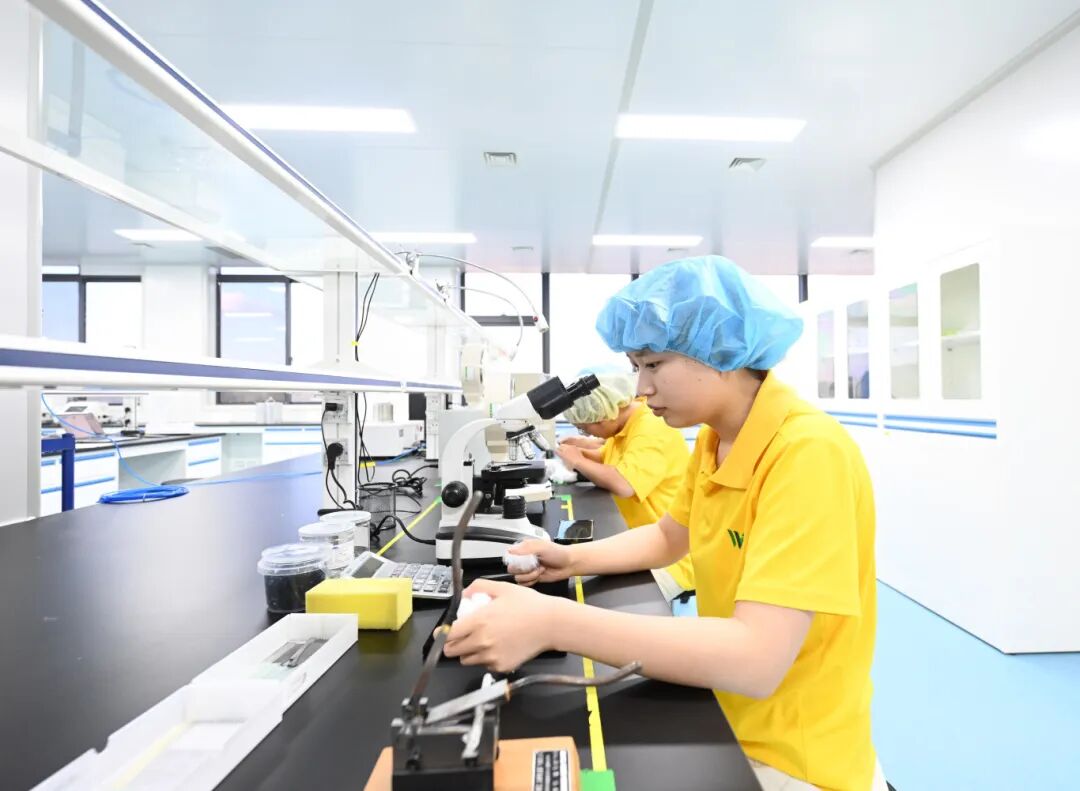 闽瑞公司与东华大学共建的联合实验室内,科研人员正在进行实验