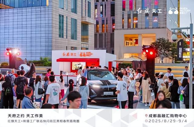 车展之外,红旗天工在成都潮流地标春熙路打造了“天工潮玩快闪店”,红旗天工05、天工06熊猫主题涂装车和巨型熊猫雕塑带来震撼的视觉体验,吸引了非常多的路人驻足观看和拍照打卡,现场还设置了惊喜好礼专区,有定制帆布袋、熊猫玩偶、定制巧克力礼盒等诸多好礼相送。从线上权益到线下体验,红旗天工以“玩在一起、创在一起”的姿态,与新世代年轻人共赴潮玩新程。